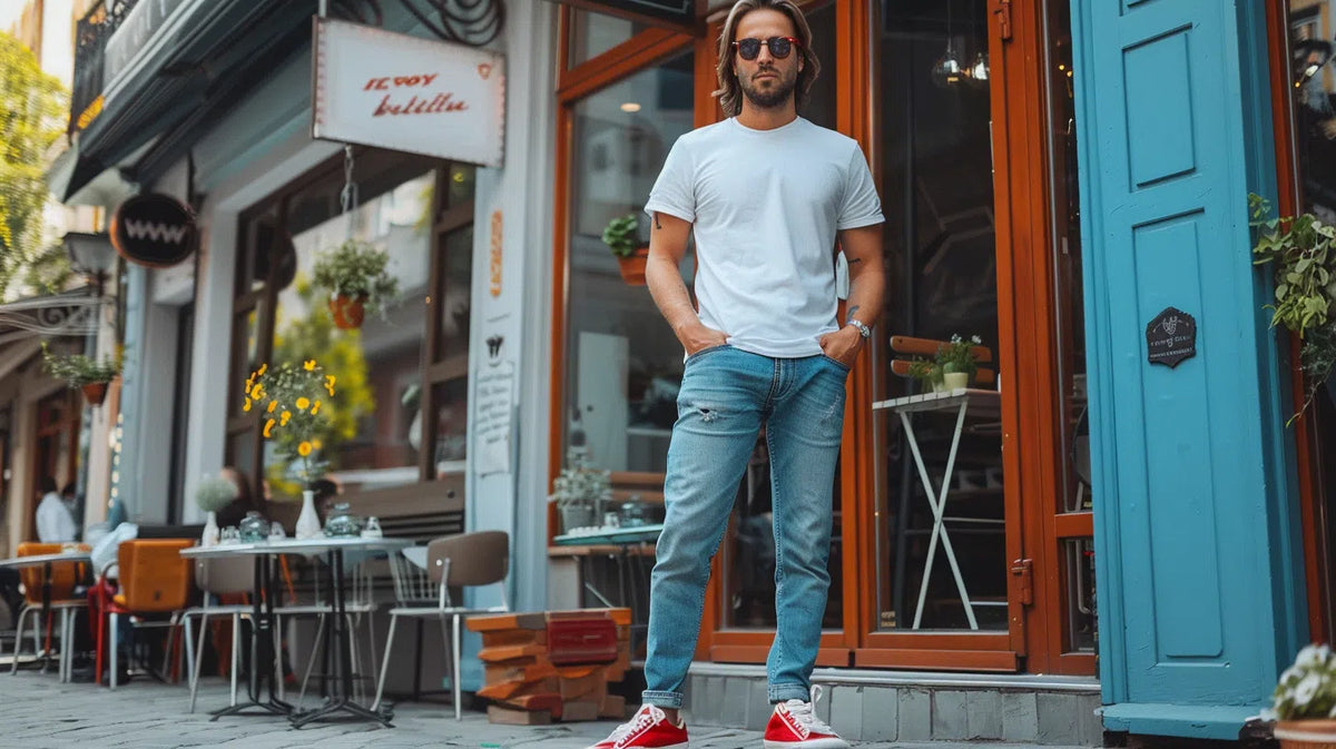 To master summer styling, focus on the material. Thin, stretchy denim or blends with materials like Tencel keep the heat at bay. Additionally, lighter colors reflect the sunlight and add a seasonal touch to your attire. Finish off with open-toed sandals or canvas sneakers for that perfect summer look.