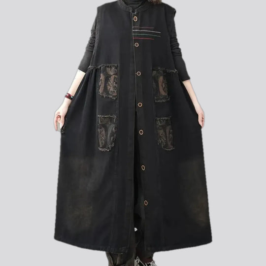 Trendy floral patchwork boho women's jeans vest