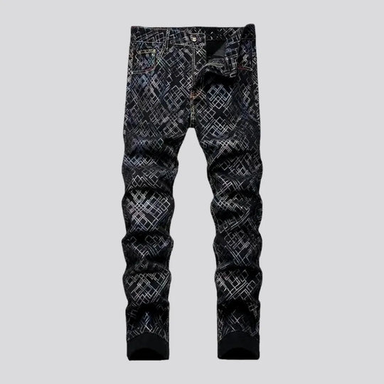 Ornament print black men's jeans