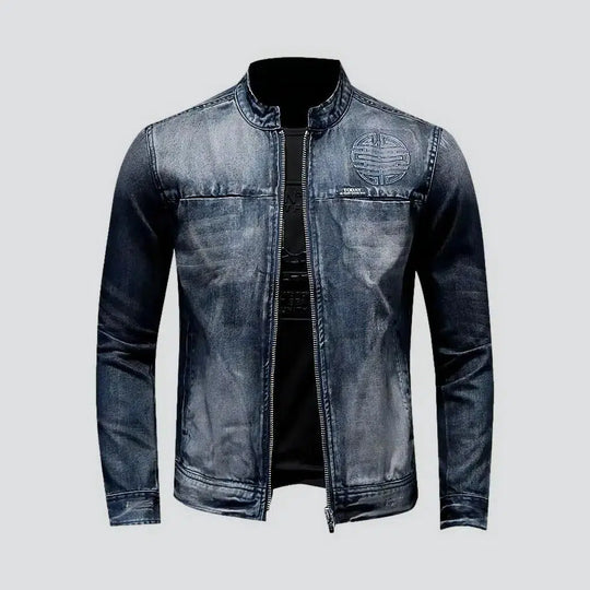 Dark-wash riding denim jacket for men